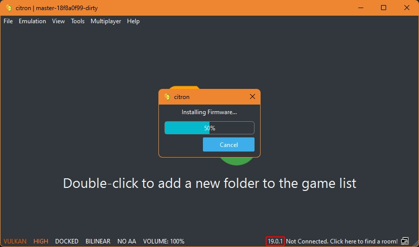 Step 1: Launch the Citron Emulator. On the main screen, you will see a message stating, ‘Double-click to add a new folder to the game list. Double-click on the screen to proceed.